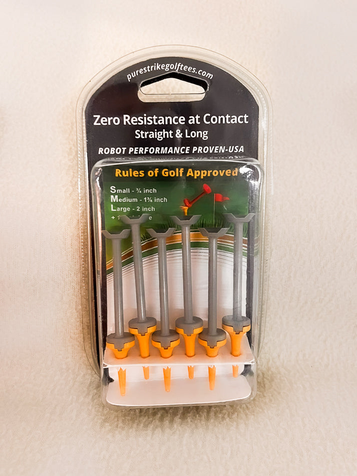 PureStrike golf tee is the new revolutionary 2-piece golf tee designed to eliminate resistance and spin during your strike.